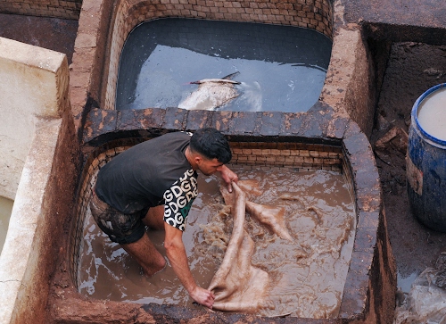 Foto dell'autore Diana Cocco candidata al contest fotografico calare su Dizy. Data inserimento: mercoledì 26 novembre 2025. Titolo: Calare tessuti nella conceria - Fes