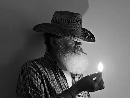 Visto il bel modello a disposizione, io lo avrei rifotografato mentre si abbassa il cappello con la mano. Il fiammifero acceso depista ![]() |